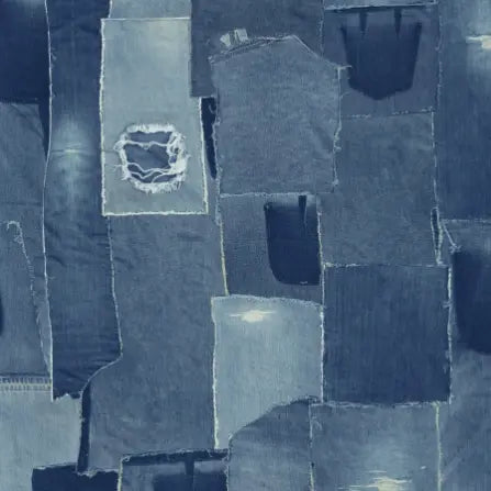 Blue Denim Patches Cotton Wideback Fabric Per Yard
